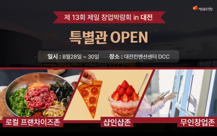 이번 ‘제13회 제일창업박람회 IN 대전’ 은 1년에 1번 유일하게 대전,충청 지역에서 최대 규모로 진행하는 창업박람회이며 예비창업자와 프랜차이즈 본사 ,업계 전문가들의 만남의 장으로 다양한 창업아이템 확인과, 실절적인 창업정보를 제공받을수 있다.