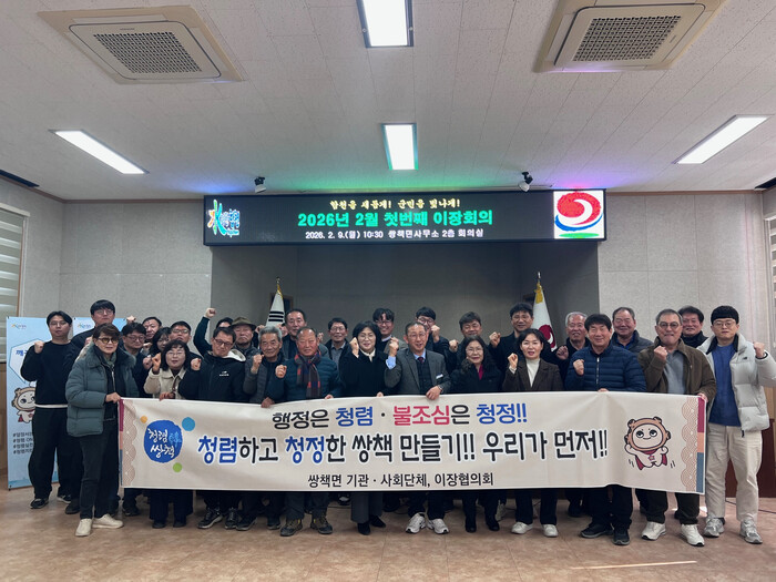 이날 회의에서는 각종 협조 사항을 전달하고 당면 추진 업무를 설명했으며 마을별 건의 사항을 청취했다. 또한 설 명절을 앞두고 청렴한 쌍책면 조성과 산불 예방 활동 강화 방안을 중점적으로 논의하고, 산불에 대한 마을 단위 선제 대응체계 구축을 위한 협조 사항을 전달했다.