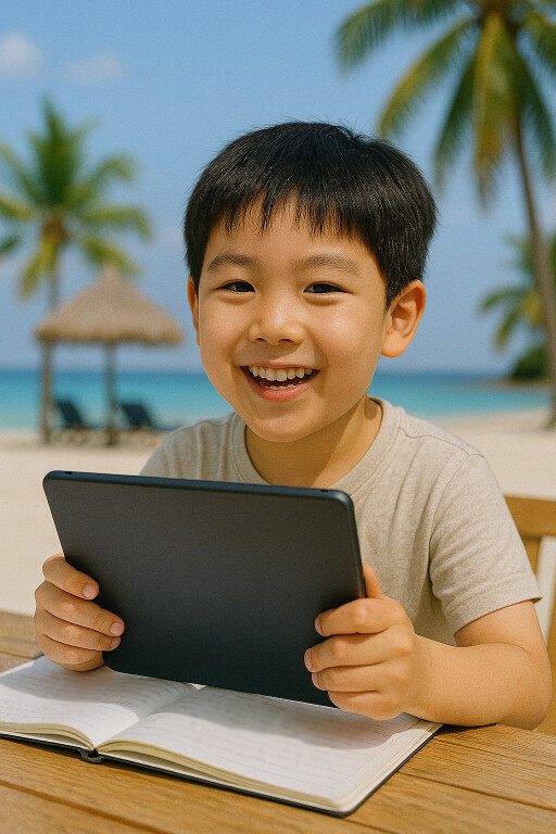 ▲ 여름 휴가지에서 학습하는 모습을 상상한 이미지 (사진=윤선생 제공) |