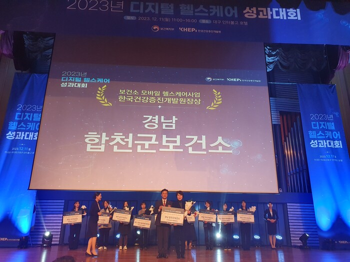 합천군 보건소는 모바일 헬스케어 플랫폼을 통해 ICT를 활용한 공공형 건강관리 서비스를 제공하고, 자체 시범사업으로 근력강화운동 프로그램을 운영했다. 참여자 95% 이상 높은 성공율을 유지해 지역 주민의 자가 건강관리 능력 향상에 기여한 공로를 인정받아 이번 대회에서 기관 표창과 부상을 받게 됐다.