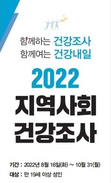 지역사회건강조사는 지역특성에 맞는 보건사업을 계획하기 위해 지역주민의 건강수준과 건강행태를 파악하고자 매년 질병관리청과 전국 시·도 보건소가 공동으로 수행하는 국가승인 통계조사이다.