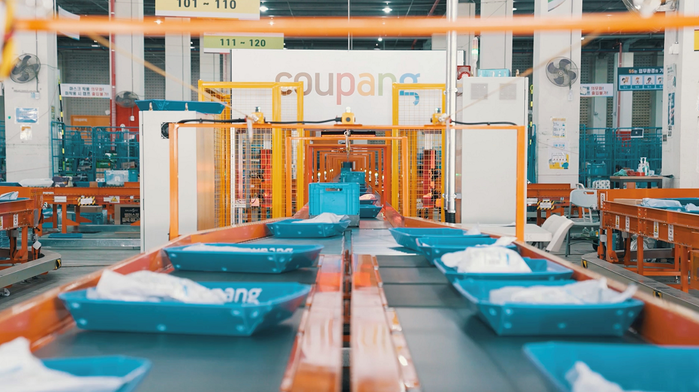 | ▲ 상품들이 오토소터에서 자동으로 배송지역별로 분류되고 있다.(사진=쿠팡 제공) |