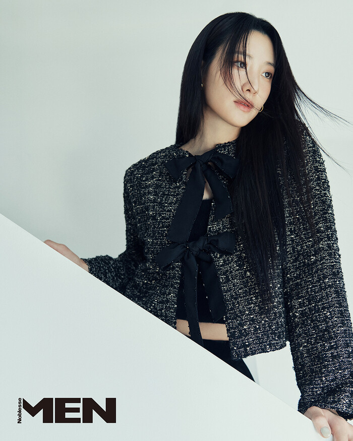 당당한 자신감과 현대적인 아름다움을 지닌 수현은 퍼 칼라 장식의 점퍼와 캐시미어 소재의 부드러운 니트 셋업, 그리고 리본 장식이 돋보이는 글리터 트위드 재킷 등 고급스러운 소재와 볼드한 실루엣이 돋보이는 트렌디한 겨울 아이템을 그녀가 가진 매력으로 소화해 내며 화보의 완성도를 높였다.