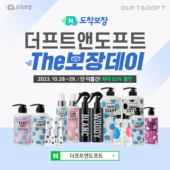 [시민일보 = 이창훈 기자] 더프트앤도프트(DUFT&DOFT)가 28일부터 29일까지 이틀간 네이버 스마트스토어에서 ‘The보장데이’ 프로모션을 진행한다고 밝혔다.
