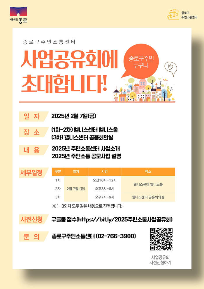 [시민일보 = 이대우 기자] 종로구(구청장 정문헌)가 오는 7일 웰니스센터에서 ‘2025년 주민소통센터 사업공유회’를 개최한다.