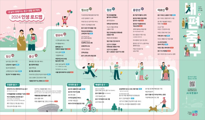 [시민일보 = 여영준 기자] 서울 중구(구청장 김길성)는 생애주기마다 제공하는 알짜배기 서비스 90개를 뽑아 ‘2024 내편중구’ 리플릿을 제작했다고 6일 밝혔다.