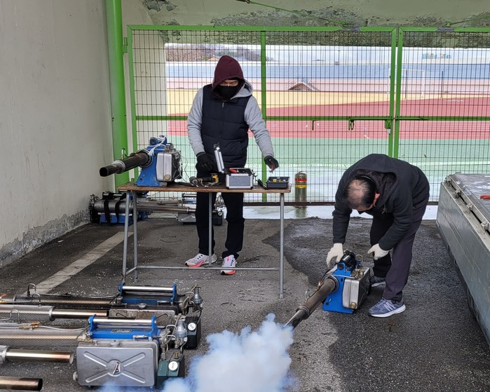 함양군은 하절기 해충 방제관리를 위한 방역소독기 점검 및 수리를 지난 18일 함양종합운동장에서 실시했다고 밝혔다. 보건소와 전문업체가 합동으로 실시한 이번 점검은 11개 읍·면 및 보건소에 보유한 차량용 및 휴대용 연무소독기 100여대를 대상으로 이루어졌다.