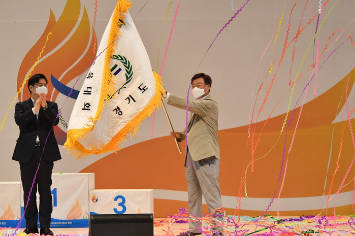 성남시는 차기 경기도체육대회 개최지로서 경기도 체육대회 개최기를 전달받았다.