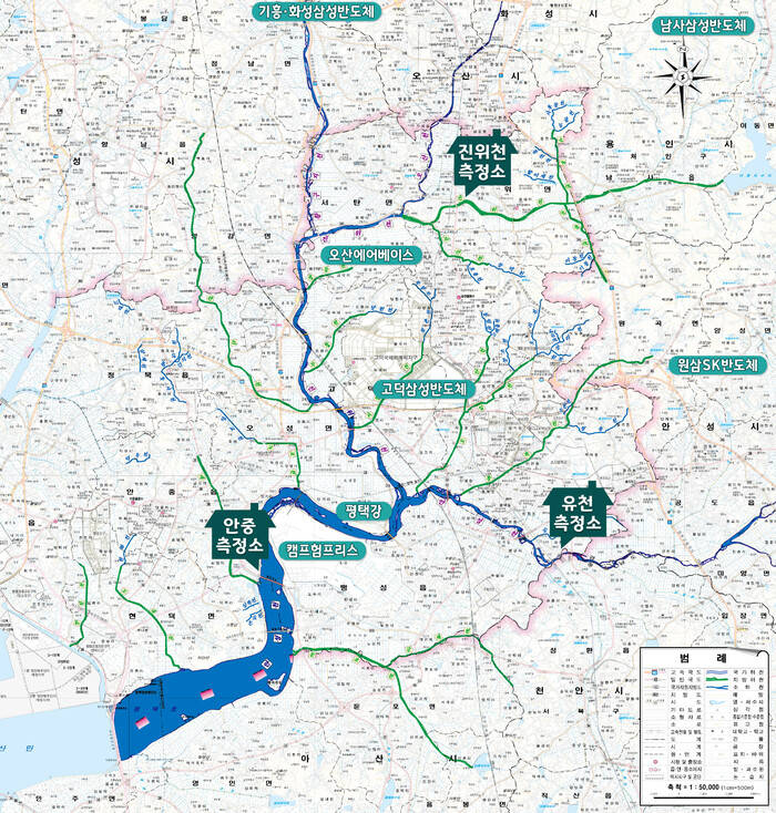국가 수질자동측정소는 중금속과 페놀 등 최대 28개 항목을 실시간으로 자동 측정하는 시설로 평택시 유천동, 안중읍, 진위면 3곳에 설치될 예정이다. 지난 5월 한국환경공단이 주관한 자문회의를 통해 설치 위치와 수질 측정 항목을 선정했으며, 향후 국가산업단지 조성에 따라 발생하는 반도체 폐수의 특성 등을 고려해 측정 항목을 점진적으로 확대할 계획이다.