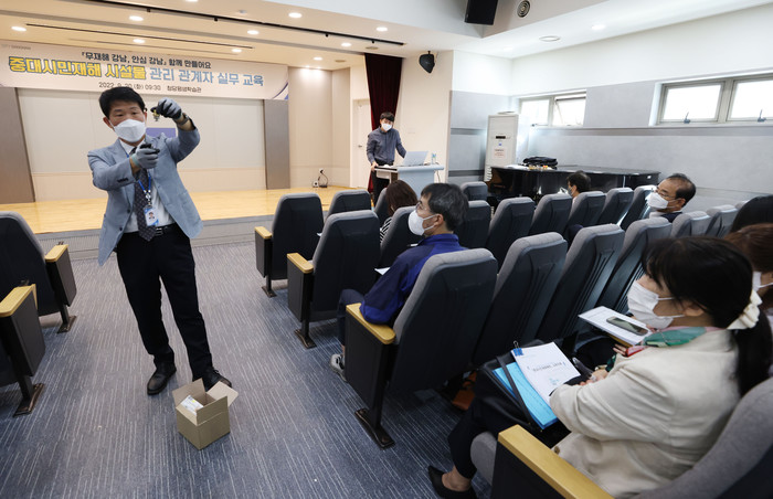 서울 강남구가 최근 어린이집 원장, 동주민센터 청사담당을 대상으로 중대시민재해시설물 실무 교육을 실시했다. 교육은 위험 요소를 선제적으로 찾아내 안전 사고 발생을 방지할 수 있는 내용으로 마련됐다. 사진은 교육이 진행 중인 모습. (사진제공=강남구청)