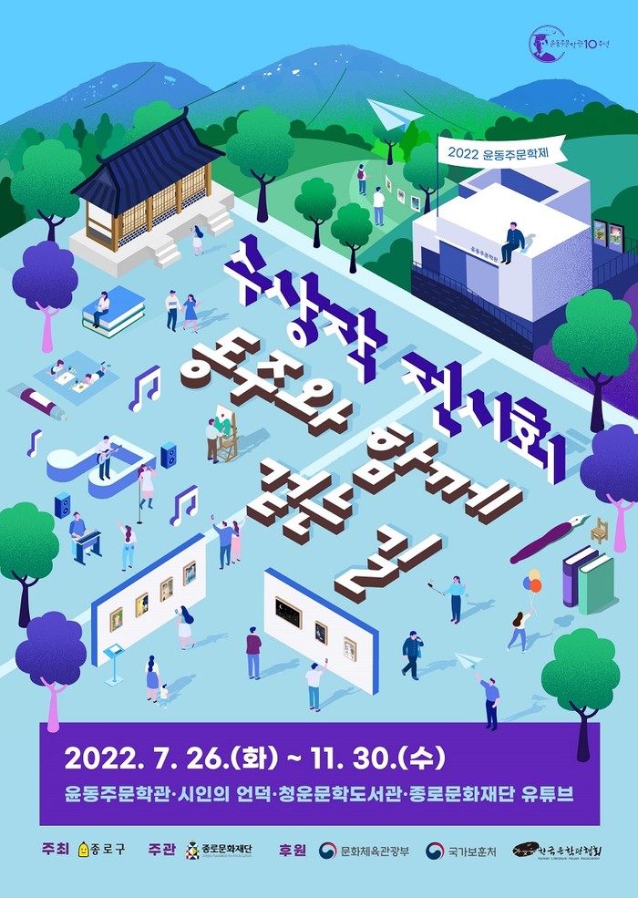 [시민일보 = 이대우 기자] 종로구(구청장 정문헌)가 오는 26일~11월30일 윤동주문학관 일대에서 2022 윤동주문학제 수상작 전시회 ‘동주와 함께 걷는 길’을 개최한다.