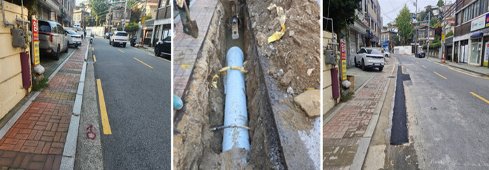 | ▲ 서대문구의 노후 하수관로 정비 사업 (왼쪽부터)전·중·후 모습. (사진=서대문구청 제공) |