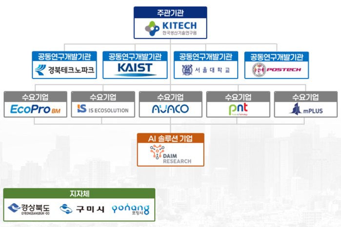 총 사업비 43억원(국비 21억원 포함)으로 추진되는 사업으로 한국생산기술연구원, 경북테크노파크 등 연구기관과 포스텍, 서울대, 카이스트 등 학계, 구미시 소재 피엔티ㆍ아이에스에코솔루션ㆍ아바코 등 지역 주력기업이 참여하는 앵커 컨소시엄이 함께한다.