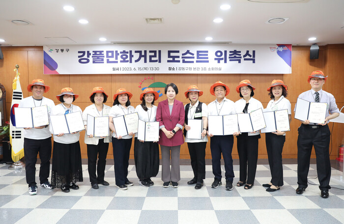 이수희 구청장은 “강동구에 대한 애정으로 자원해 벽화 해설과 함께 지역 홍보에 적극 나서주신 도슨트 활동가들에게 감사 드린다”며 “올해 디즈니 플러스에서 8월 초 웹툰 드라마 ‘무빙’이 방영되면 더욱 방문객이 늘어날 것으로 예상되는 만큼 바쁘시더라도 좋은 안내자가 돼 주시리라 믿는다”고 격려했다.