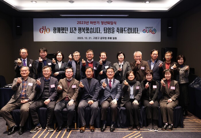 [시민일보 = 이대우 기자] 서울 구로구가 21일 구로3동에 있는 포포인츠 바이 쉐라톤 호텔에서 ‘2023년 하반기 정년 퇴임식’을 진행했다.