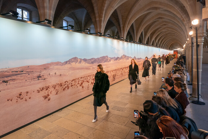 | ▲ 지난 6일(현지 시간), 프랑스 파리 '꼴레쥬 데 베르나르뎅(Collège des Bernardins)'에서 진행한 타임 2025년 가을·겨울(F/W) 시즌 프레젠테이션에서 모델들이 신제품을 선보이고 있는 모습. (사진=현대백화점 제공) |