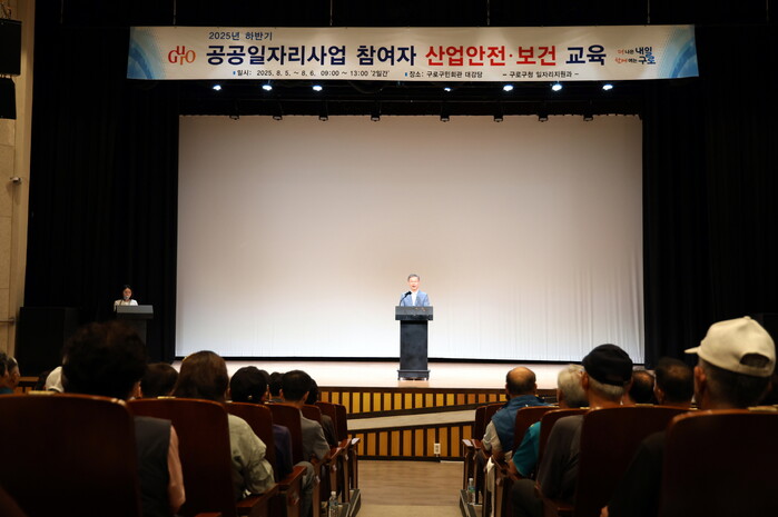 [시민일보 = 박소진 기자] 구로구(구청장 장인홍)가 지난 5일부터 6일까지 이틀간 구로구민회관 대강당에서 2025년 하반기 공공일자리사업 참여자를 대상으로 산업 안전‧보건 교육을 했다.