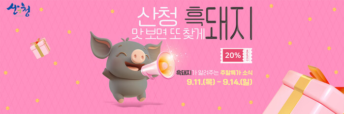 산청군농협정육가공센터가 참여하는 행사에서는 산청흑돼지 삼겹살과 목살을 최대 39% 할인된 가격에 만나 볼 수 있다.