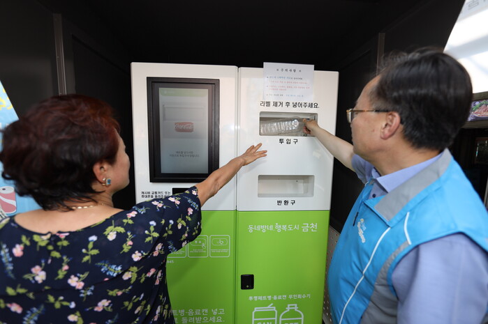 [시민일보 = 여영준 기자] 서울 금천구(구청장 유성훈)는 투명페트병과 캔의 회수율을 높이고, 구민들의 분리배출 참여를 유도하기 위해 14곳에서 무인 회수기를 운영하고 있다고 밝혔다.
