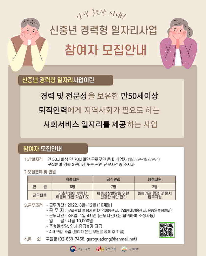 | ▲ 구로구의 ‘신중년 경력형 일자리사업’ 모집안내 홍보 포스터. |