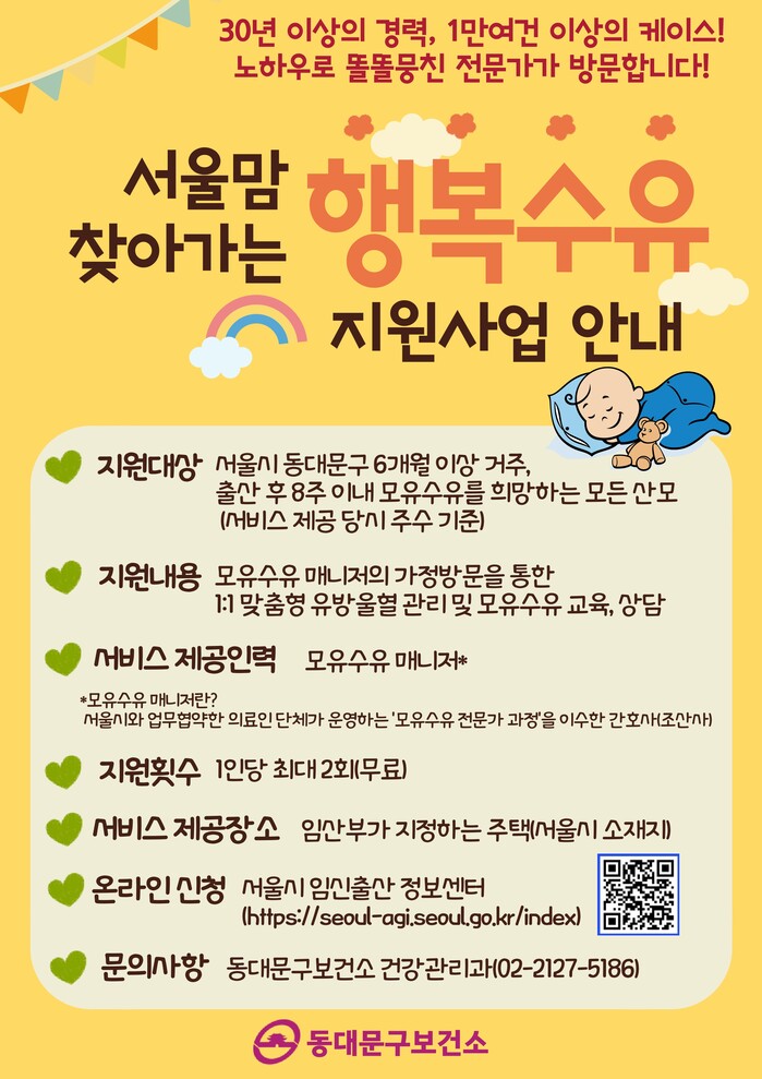 | ▲ 서울맘 찾아가는 행복수유 지원 사업 안내문.(사진=동대문구청 제공) |
