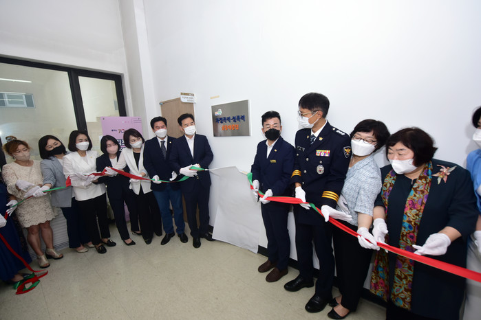 경기 김포시는 최근 김포시 가정폭력·성폭력 공동대응팀의 운영을 알리는 개소식을 열었다. 공동대응팀 운영을 통해 가정폭력 등 피해자에게 초기상담 및 맞춤형 복지서비스 연계가 가능하며 민·관·경 협업으로 견고한 지역사회 안전망 구축이 가능할 것으로 기대된다. 사진은 개소식에서 관계자들이 현판제막식을 진행하고 있는 모습. (사진제공=김포시청)