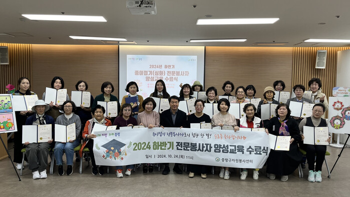 [시민일보 = 여영준 기자] 중랑구(구청장 류경기)가 지난 24일 중랑구자원봉사센터에서 ‘종이접기(심화) 전문봉사자 양성교육 수료식’을 개최했다.