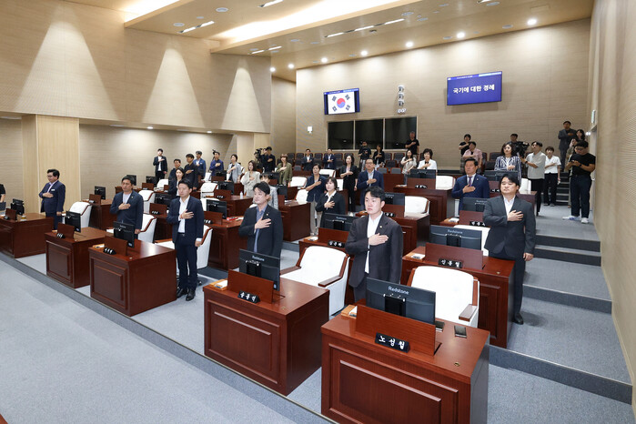 정재천 의장은 개회사를 통해 “올여름 기록적인 폭염에 대비하여 동작구의회는 모든 재난 상황에서 소외되는 구민이 없도록 세심히 살피고 대응하겠다”고 말했다. 이어 지난 7월 구청장이 의회에 설명이나 알림 없이 국외출장을 다녀온 사실을 지적하며 “집행부에서는 주민을 대표하는 기관인 의회와 소통을 강화하고 구민 안전을 최우선으로 해달라”고 당부했다. 또한, “이번 임시회는 신청사 이전 후 처음 열리는 뜻깊은 회의로, 새로운 각오로 의정활동을 펼쳐 나갈 것”을 다짐했다.