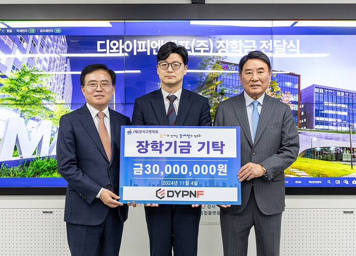 이날 디와이피엔에프(주)가 기탁한 장학기금은 (재)강서구장학회를 통해 어려운 여건 속에서도 꿈을 키워 나가는 지역내 학생들의 학업 지원을 위해 쓰 일 예정이다.
