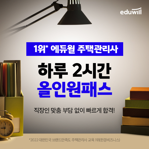 [시민일보 = 여영준 기자] 종합교육기업 에듀윌은 하루 2시간 학습으로 주택관리사 시험을 합격할 수 있도록 지원하는 '올인원패스' 과정 수강생을 모집한다고 5일 밝혔다.