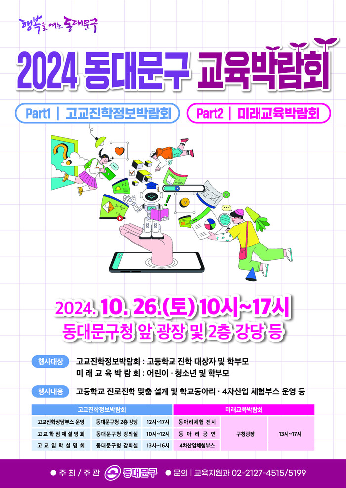 [시민일보 = 이대우 기자] 서울 동대문구(구청장 이필형)가 오는 26일 구청에서 ‘동대문구 교육박람회’를 개최한다.