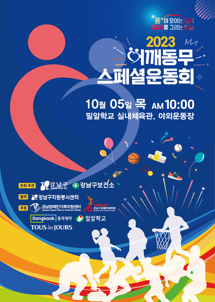[시민일보 = 이대우 기자] 서울 강남구(구청장 조성명)가 10월5일 오전 10시~오후 4시 일원동 밀알학교(일원로 90)에서 발달장애인 450명이 선수로 참가하는 ‘2023 어깨동무 스페셜운동회’를 개최한다.