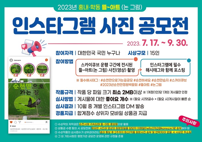 | ▲ 인스타그램 뜰 아트 사진 공모전 안내문. (사진=순천시청 제공) |