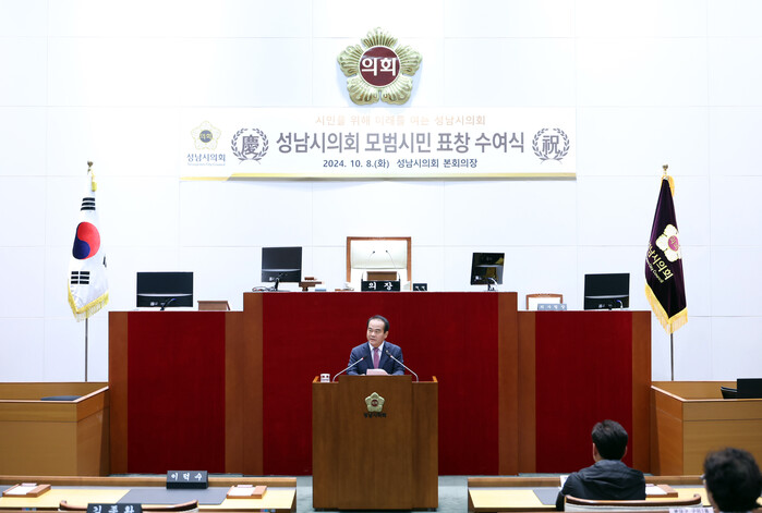[성남=오왕석 기자] 성남시의회(의장 이덕수)는 2024년 3분기 성남시의회 모범시민 표창수여식을 성남시의회 2층 본회의장에서 최초로 개최했다고 밝혔다.