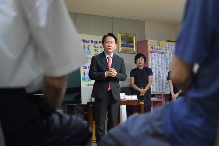 | ▲ 이성헌 서대문구청장이 명절을 앞두고 관내 한 복지시설을 찾아 이용자들과 대화하고 있다. (사진=서대문구청 제공) |
