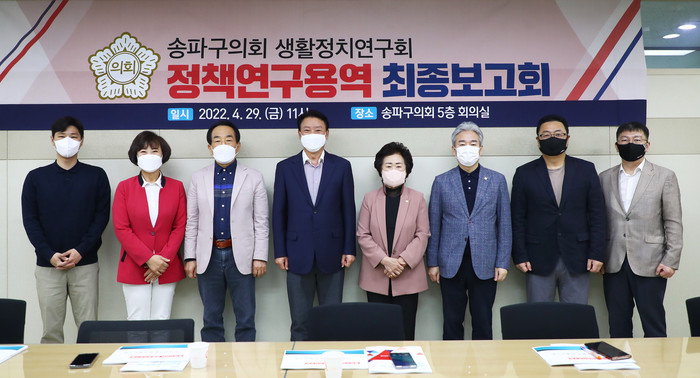 [시민일보 = 이대우 기자] 서울 송파구의회 의원연구단체 생활정치연구회가 최근 송파구의회 5층 회의실에서 ‘송파구의회 정책기능 강화방안’에 관한 연구용역 최종보고회를 개최했다.