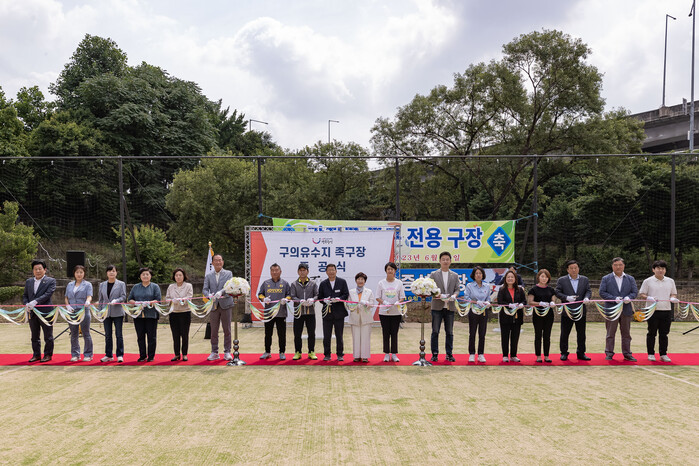 [시민일보 = 여영준 기자] 광진구(구청장 김경호)는 최근 구의3동에 위치한 ‘구의유수지 족구장’을 현대화된 체육시설로 새롭게 단장했다고 12일 밝혔다.