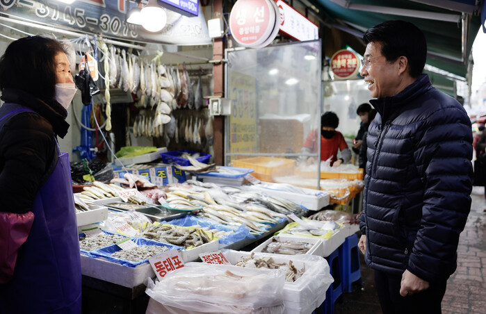 | ▲ 설 연휴를 앞두고 시장 격려방문에 나선 서강석 송파구청장. (사진=송파구청 제공) |