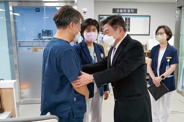 이 구청장은 “전공의들의 의료현장 집단 이탈 등 의료공백이 발생한 상황에서, 특히 응급실 및 수술실 필수의료 인력들의 어려움이 매우 클 것으로 예상된다”며 “어려운 상황 속에서도 꿋꿋이 현장을 지켜주신 의료진분들께 구민들을 대표하여 깊은 감사를 드린다”고 인사를 전했다.