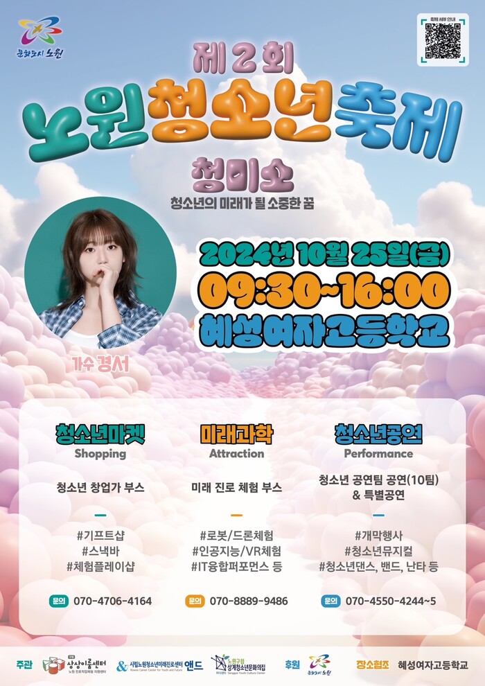 [시민일보 = 박소진 기자] 서울 노원구(구청장 오승록)가 오는 25일 혜성여자고등학교에서 지역 청소년들을 위한 연합축제 ‘청미소’를 개최한다.