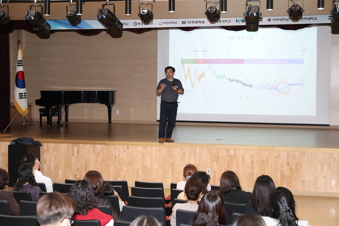 이날 강의를 맡은 사람은 방송, 강연, 집필 활동 등으로 유명한 이정모 국립과천과학관 관장이다. 이 관장은 ‘기후 위기와 지속 가능 성장’이라는 주제로 기후 위기의 심각성, 탄소 중립 정책 현황, 지속 가능 성장을 위한 실천 과제 등을 놓고 열띤 강연을 펼쳤고 뒤이어 질의응답이 이어졌다.