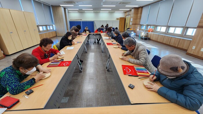 참가자들은 미술치료 전문 강사와 함께 시계 만들기, 소중한 사람 그리기 등을 통해 스트레스와 불안 등을 해소하는 시간을 보냈다.