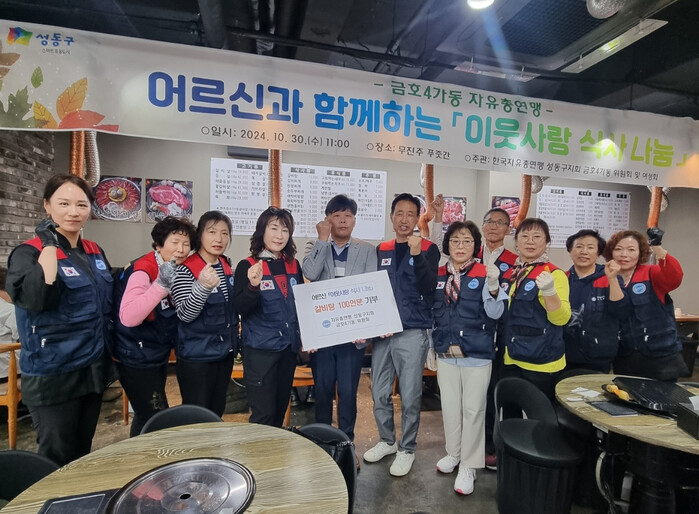 [시민일보 = 박소진 기자] 성동구(구청장 정원오) 금호4가동(동장 김평선)에서 지난 10월30일 취약계층 홀몸노인 100세대 대상 '이웃사랑 식사 나눔' 행사를 개최했다고 6일 밝혔다.