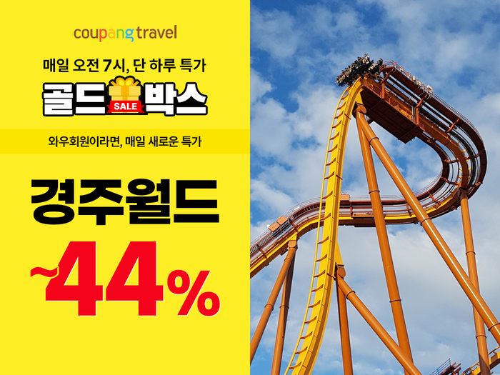 쿠팡트래블 관계자는 “경주 보문단지에 위치한 경주월드는 경상지역을 대표하는 대형 테마파크로, 짜릿하게 즐길 수 있는 어트랙션과 다양한 볼거리가 넘치는 곳”이라며 “오늘 하루, 골드박스를 통해 특가로 종일이용권을 구매하고, 연휴가 많은 9~10월에 경주월드를 마음껏 즐겨보길 바란다”고 전했다.