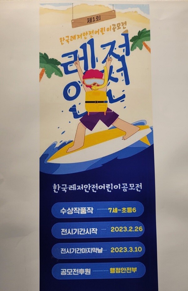 행정안전부 후원으로 ‘안전한 레저활동 즐기기’와 ‘내가 실천하는 레저안전’을 주제로 하여 치러진 해당 공모전에서는 총 20점의 작품을 선정하고 을지로 아뜨리애 갤러리에서 이달 10일 전시됐다. 한국레저안전협회는 해당 공모전에 대한 높은 관심에 힘입어 향후 확대 발전시킨다는 계획이다.