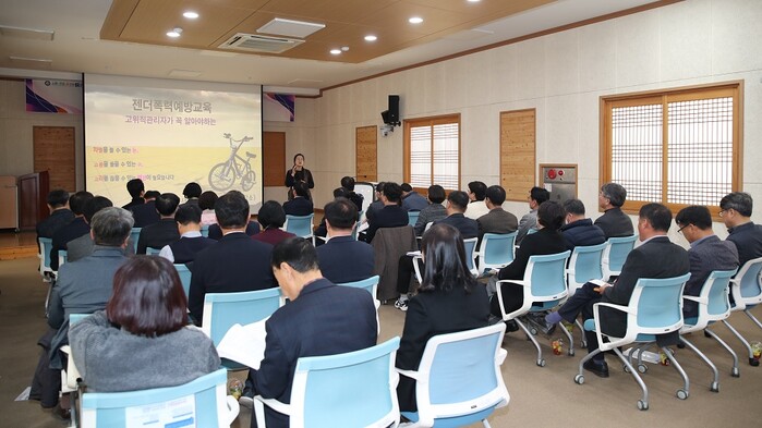 | ▲ 강진군, 지난 7일 강진군청 대회의실에서 고위직 대상 맞춤형 폭력예방 통합교육 / 강진군 제공 |