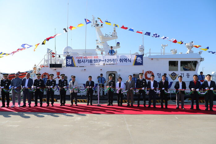 목포해양경찰서(서장 김해철)가 지난 8일 목포해경 전용부두에서 최신예 형사기동정 125정의 취역식을 개최했다고 9일 밝혔다.
