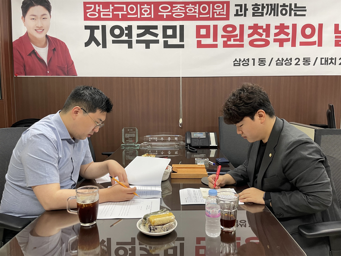 [시민일보 = 이대우 기자] 우종혁 서울 강남구의회 의원 (삼성1·2동·대치2동)이 8월 휴회기간 동안 ‘지역주민 민원청취의 날’을 열고 주민들과의 소통에 나섰다.