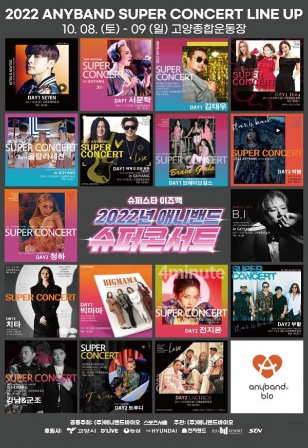 가을 밤을 수 놓을 축제의 서막은 △8일 : 세븐, 빅마마, GOD(김태우), 디바, 서문탁, 울랄라세션, 브레이브걸스, 레게강같은평화(하하&스컬)가 △9일 : 청하, 라치카, B.I, 포미닛(전지윤), 강남&군조, 박봄, 치타, 트루디, 부활(보컬:박완규)이 무대를 장식할 예정이다.