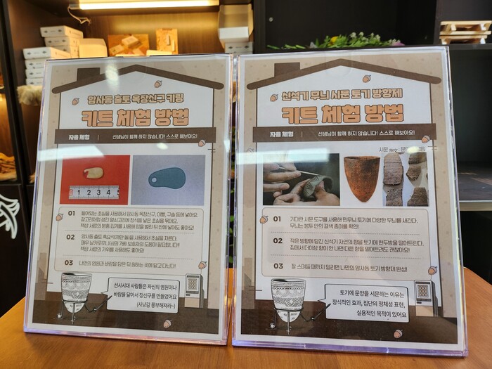 체험 키트(kit)는 2가지 종류로 ▲흑요석으로 초실을 잘라 나만의 소원을 담은 개성 넘치는 열쇠고리를 만들어 보는 ‘옥(玉)장신구 키링’ ▲나만의 정체성을 표현하는 빗살무늬 문양을 새겨 방향제를 만들어 보는 ‘빗살무늬토기 시문 방향제’ 등이다.
